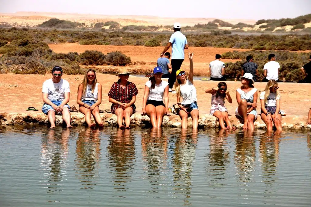 La journée se poursuivra par un déjeuner sur les plages de sable blanc de Porto Rico, un lieu paradisiaque propice à la détente. Vous aurez ensuite l’occasion d’escalader la célèbre Dune Blanche, un site riche en dépaysement où vous pourrez également vous baigner dans les eaux cristallines de la lagune. Sur le chemin du retour, une halte bien-être vous attend à la Source d’Asma. Ce forage dans la nappe phréatique fait jaillir une eau thermale soufrée naturelle à 38°C, reconnue pour ses vertus thérapeutiques ; l’occasion parfaite pour une douche revigorante en plein désert.