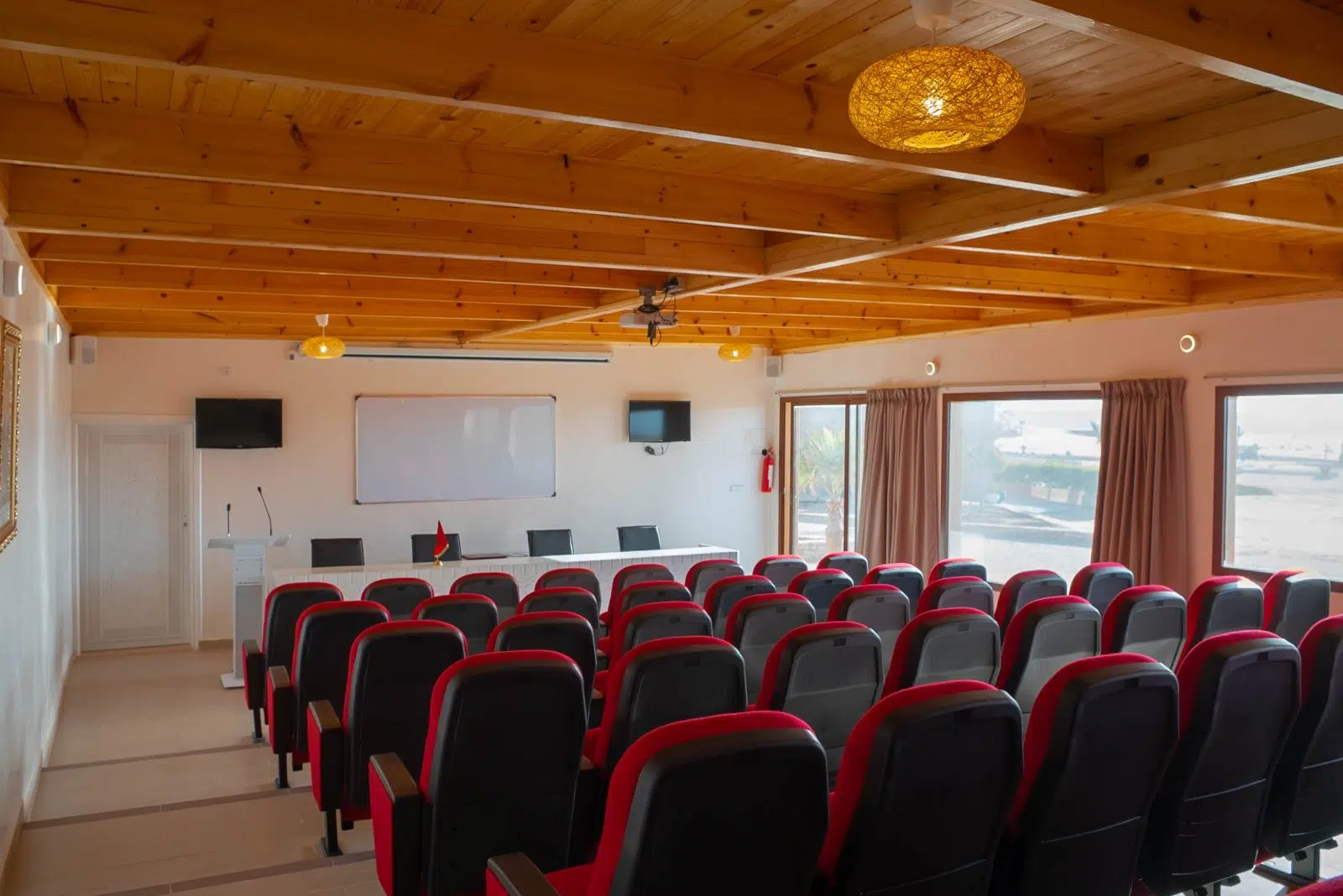 Pour vos événements professionnels, l’hôtel Dakhla Evasion Resort & Spa met à votre disposition une salle privative de projection et de travail d’une superficie de 50 m². Cet espace modulable peut accueillir jusqu’à 58 personnes pour vos réunions ou séminaires (équipement de projection vidéo et régie son compris).