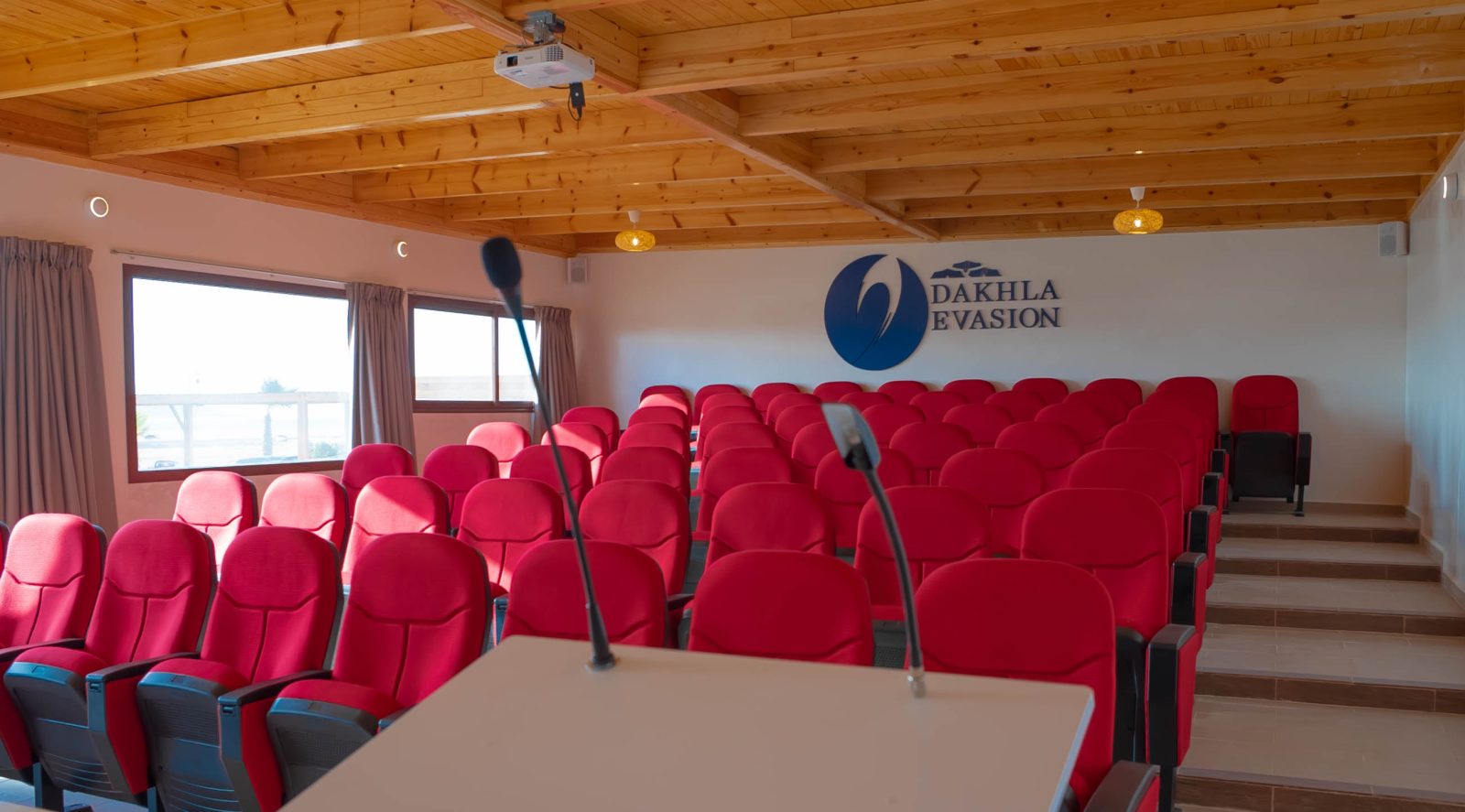 Pour vos événements professionnels, l’hôtel Dakhla Evasion Resort & Spa met à votre disposition une salle privative de projection et de travail d’une superficie de 50 m². Cet espace modulable peut accueillir jusqu’à 58 personnes pour vos réunions ou séminaires (équipement de projection vidéo et régie son compris).